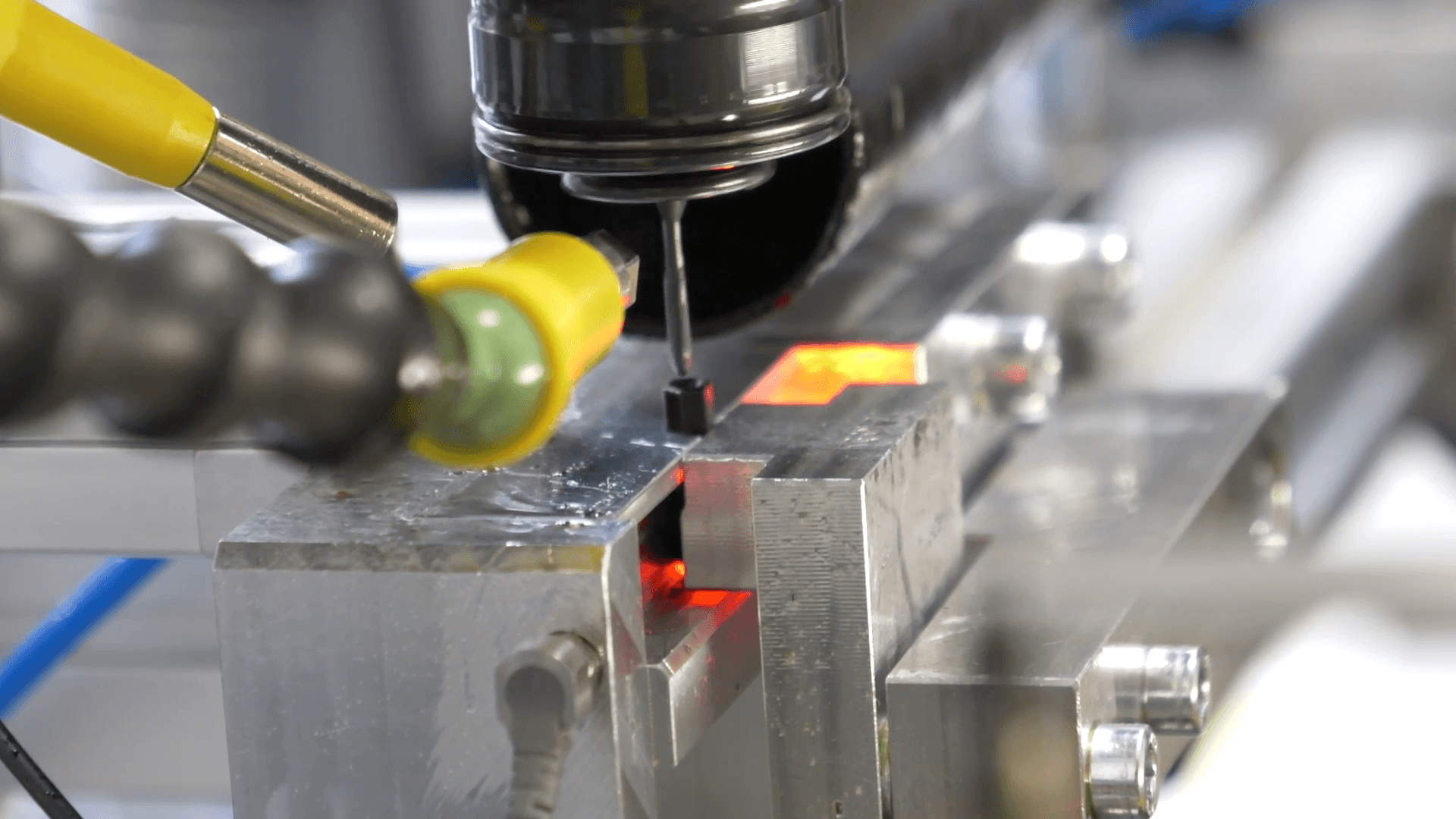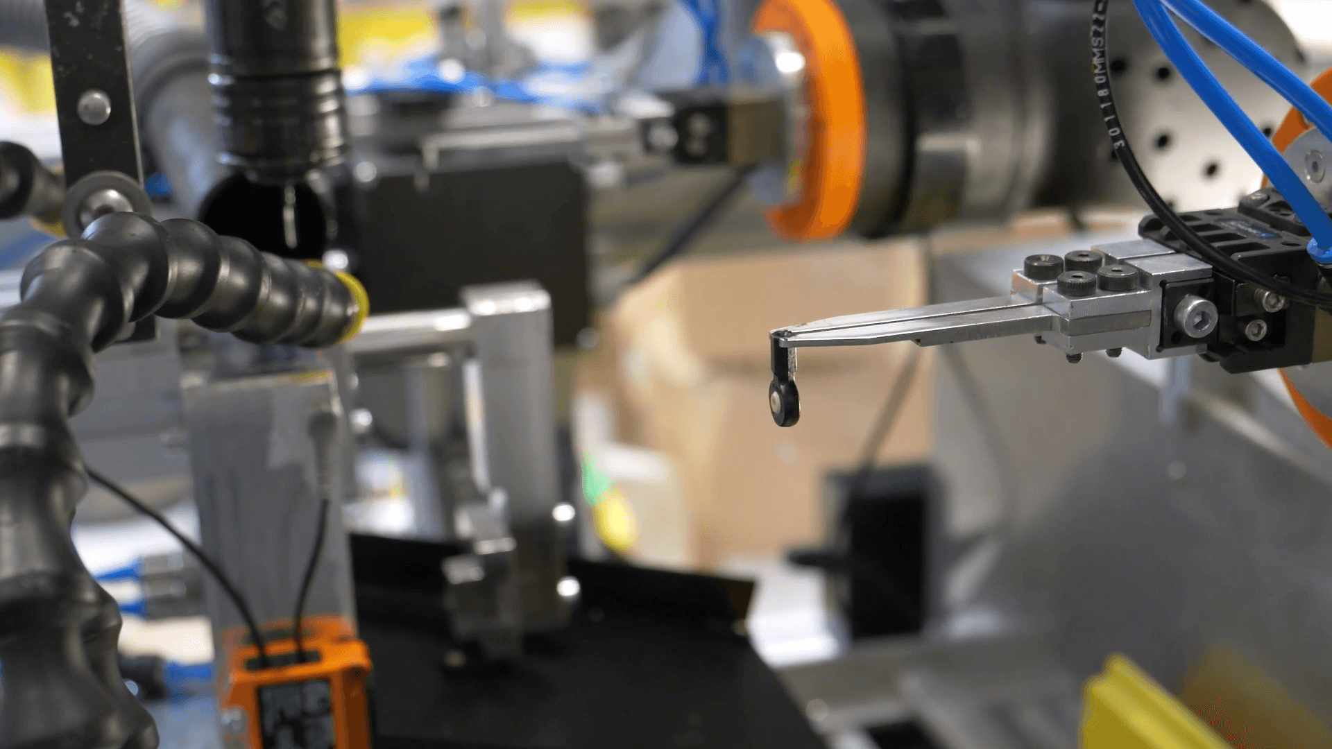 In this video, we present an advanced solution for downstream thread cutting in production. The setup of our ReBeL robot and the integration of the IRC are shown, as well as the operation of the rotary conveyor and the camera for precise detection and positioning of the workpieces. The gripper is demonstrated in action, handling the workpieces safely and efficiently. The step feeder supports the process with its precise conveying technique, ensuring that the entire system operates smoothly and efficiently thanks to reliable power and data transmission. The benefits of this solution include increased production speed, reduced scrap, and improved workplace safety. Additionally, a low footprint is ensured, facilitating integration into various production environments.